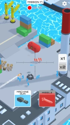 Protect your troops and defend your base! You are controlling an aircraft equipped with different weapons. Your mission is to prevent the enemy from conquering your base. You can destroy buildings and bridges and make cars and gas tank explode!