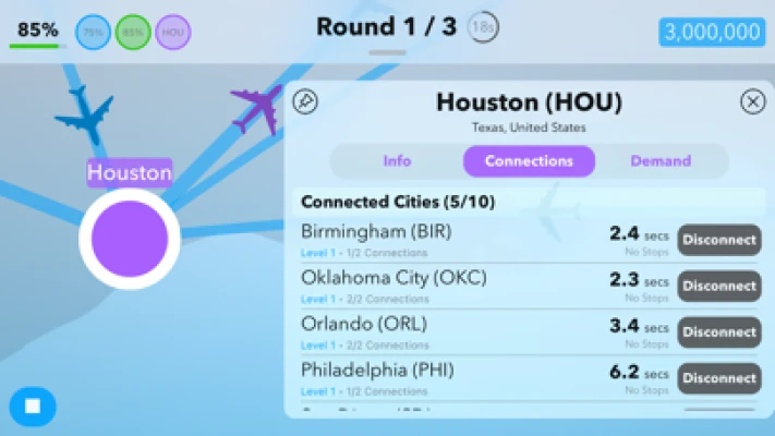 Step into the world of airline route planning, where your goal is to create a flight network to guide passengers to their destinations in a limited amount of time. You get to call the shots on which routes to draw and which cities to designate as hubs that best serve each scenario. The flight maps you design will also need to be efficient and flexible to accommodate for events that may occur, like airport rushes and closures, as its effects ripple throughout your network. With over 350 geographically and historically themed levels to play, each map you make will be put to the test.