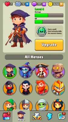 Each hero grows from a novice to a legend. Upgrade skills, unlock gear, and create the perfect team for every battle.