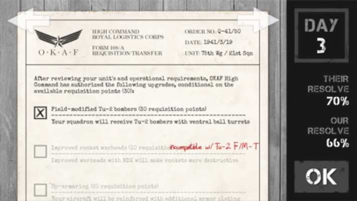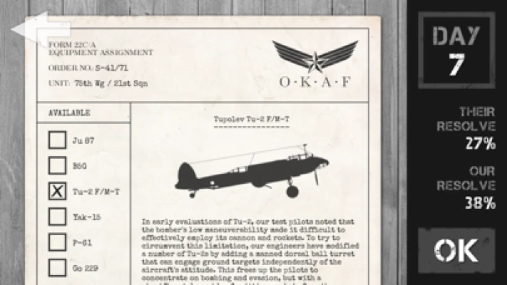 Upgrade your ragtag air force with better aircraft, bombs, rockets, armor and engines.