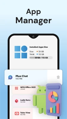 Easily view installed apps by size, last used date, and installation date. Uninstall rarely used apps in a few taps to recover space.