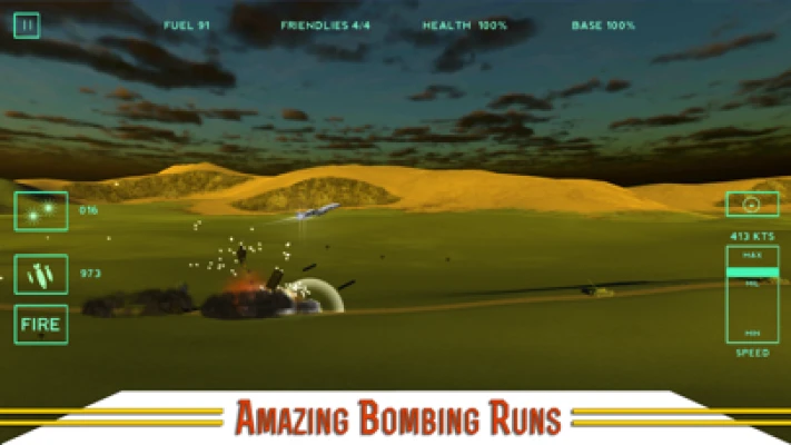 Think you can just fly high and carpet bomb? Think again. Fly too high and Russian S300 surface to air missile systems hidden in the hills will take you out. Fly too low and you'll likely impact the ground. Use your wits, flares and evasive maneuvers to dodge guided missiles and anti-aircraft gun fire. Be too aggressive and AA guns will shred your plane. Be too passive and the Scuds could launch. If a Scud launches.. your base is history. Game over.