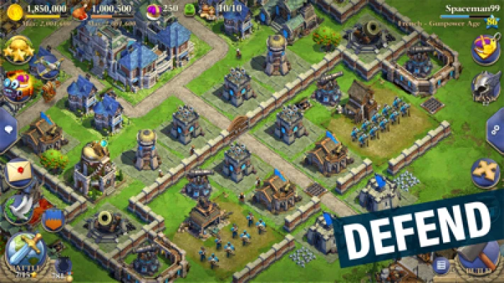 • Reinforce your troops with better equipment, upgrade your buildings and town center with modern materials.