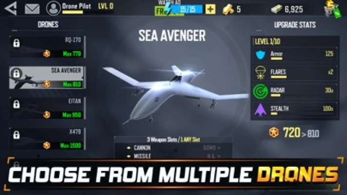 Take charge of world-class combat UAVs with the power to change the fate of humanity plunged into this dark era.Your vision and courage will shape mankind's future. Your exceptional abilities will become legendary. Success requires risk and bravado. Make the right choices on daring missions to protect, defend, gather gold and resources.