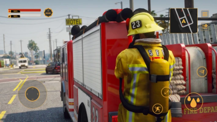 In the game FireFighter Squad, you have to try on the role of a real fire brigade worker in a large American city. Players will experience exciting tasks, more than 30 different locations, inspired by the landscapes of the US West Coast. Drive carefully recreated Rosenbauer America vehicles, extinguish fires and have fun with the game.
