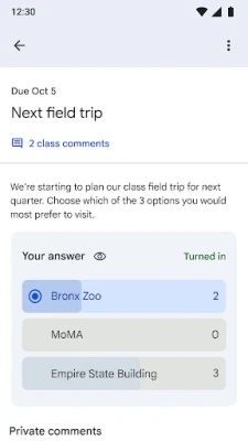• Improves organization – Students can see all of their assignments on an assignments page, and all class materials (e.g., documents, photos, and videos) are automatically filed into folders in Google Drive.