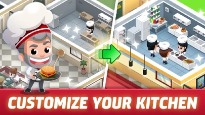 • Hire a star chef, manage finances and profit in your cooking simulator.