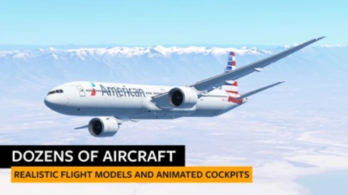 A fleet of detailed aircraft awaits, ranging from single-engine propeller to military fighters and airliners. Configure your flight with comprehensive planning tools, including weight and balance, and take off in your favorite aircraft and livery combination. Advanced autopilot functions including VNAV, LNAV, and autoland will have you flying like a pro.