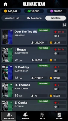 - Ultimate Team Management: Adjust your lineup, view and bid on auctions, sell or trade player cards, open packs, and complete sets to optimize your team.