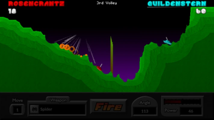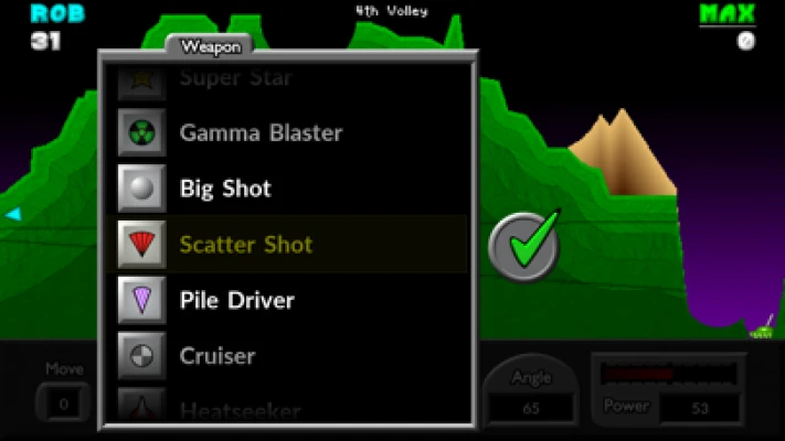Experience the thrill of launching volley after volley of powerful and fun weapons across the battlefield, using very simple controls. Select your angle, power, and FIRE! Your arsenal of unique and useful weapons includes: Napalm, Firecracker, Skipper, Cruiser, Dirt Mover, and dozens more! This is the light-hearted game of heavy artillery for everyone.