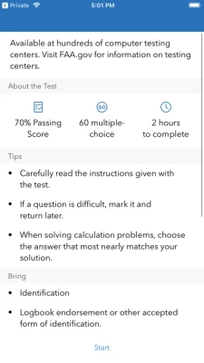 Test mode randomly generates a 60-question session from the entire database of published FAA test questions, simulating the real Remote Pilot test. After answering all the questions, you’ll be given instant results, and have the option to review either all the questions, or just missed questions. Included in the review session are the same detailed explanations for why each answer is correct.