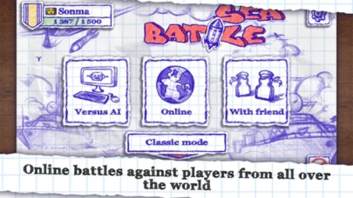 Sea Battle is a board game everybody loves since childhood but with new options! Online multiplayer! Fight against the players from all over the world! You have a wide arsenal in your disposal: battleships, destroyers, bombers, mines, anti-aircraft defense, radars and other stuff. Place your ships of different size on the battlefield, launch the aircraft for massive bombshells and try to sink the rival ships.By combining different positioning of your ships, aircraft, anti-aircraft defense and mines you can develop your own strategy for the game and leave no chances for your opponents!Sea Battle is a game with elaborate squared notebook graphics and effects, which make the game original and create a special atmosphere!