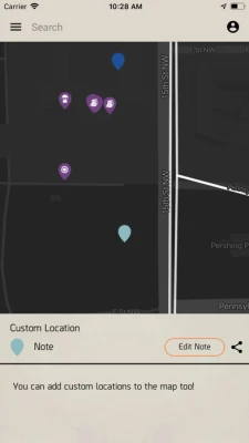 • Take Notes - mark places of interest by adding notes to the map.